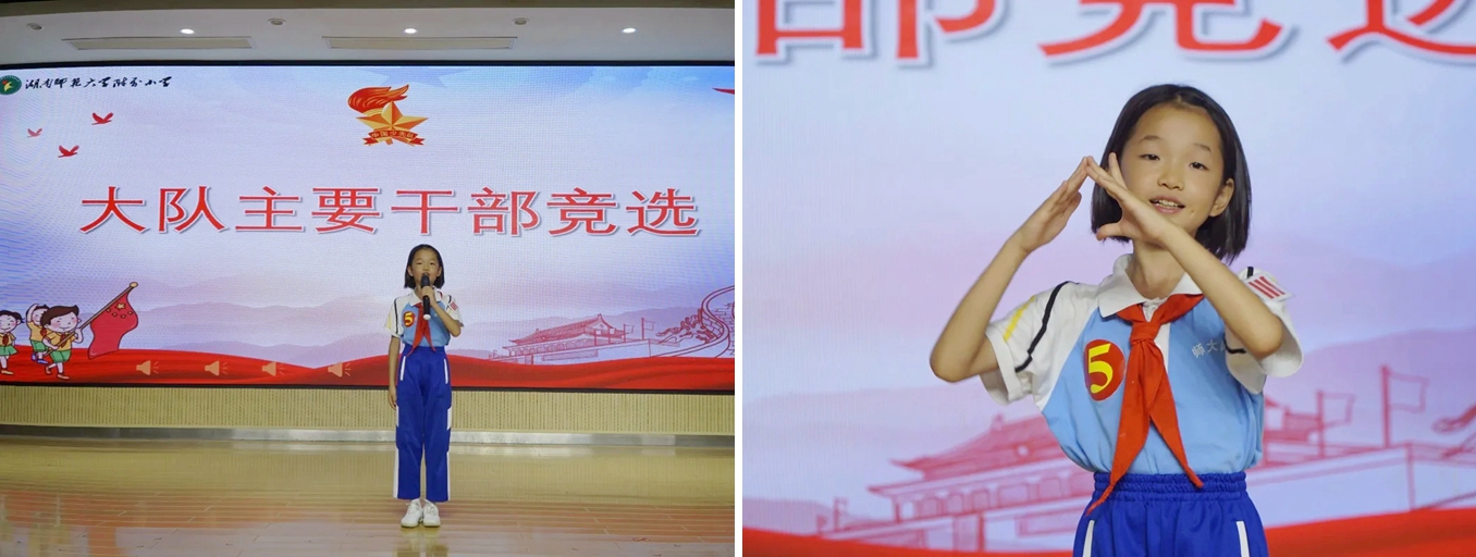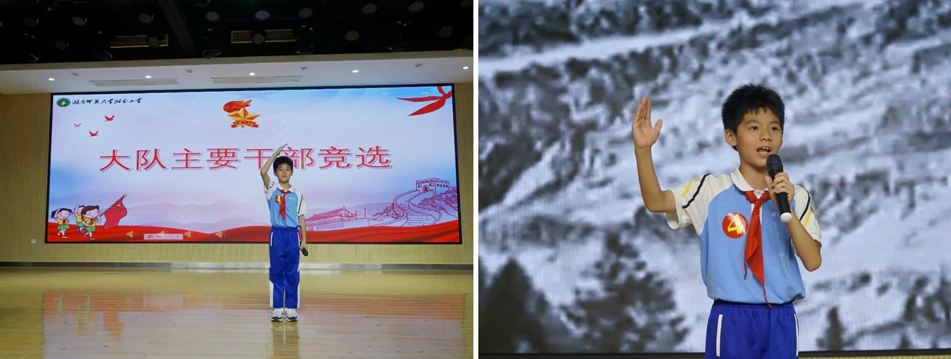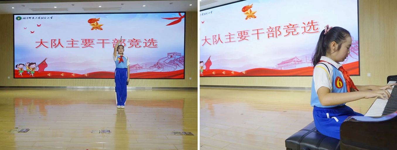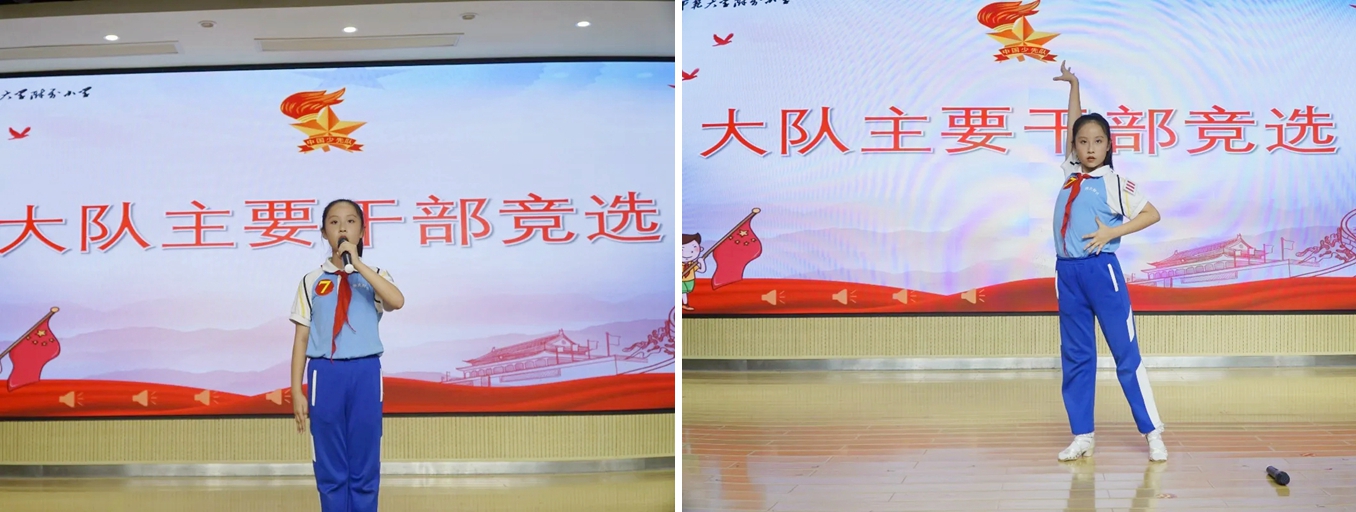 大队干部是少先队员的知心朋友、老师们的得力助手,大队主要干部更是全校少先队员学习的榜样、赶超的目标。10位候选干部站在竞演台上个个神采飞扬、自信满满。简明扼要的竞演和精彩的才艺展示更是彰显出他们优秀的素质和对做好干部工作的坚定决心。