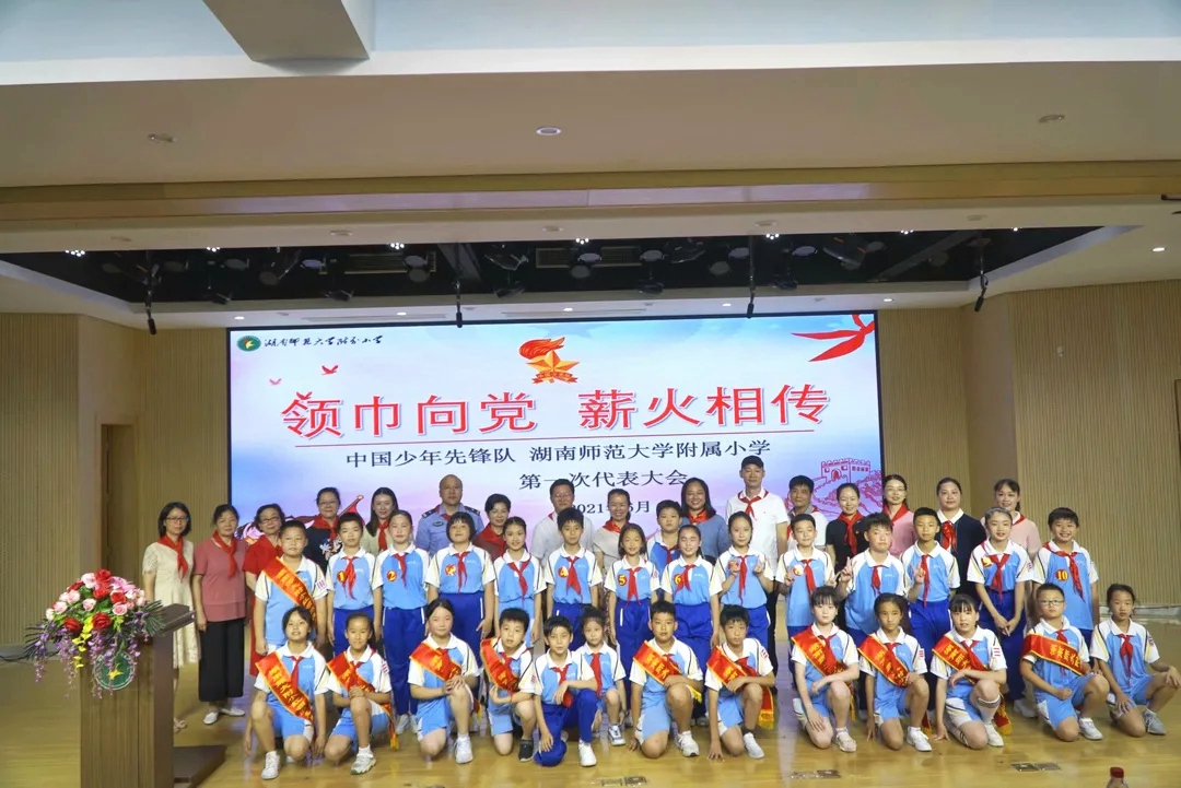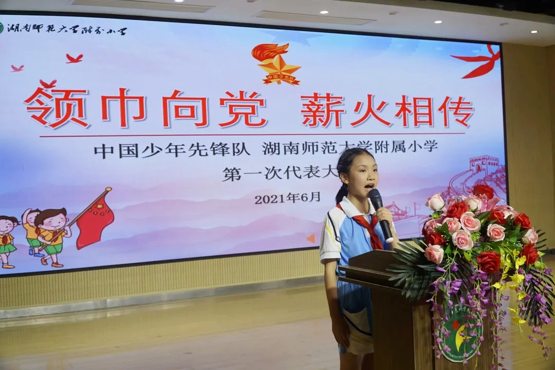 星星火炬指引前进的方向,鲜艳的领巾映衬灿烂的笑脸。6月25日,中国少年先锋队湖南师范大学附属小学第一次代表大会在南楼报告厅隆重召开。少先队员代表、特邀代表和学校行政共计270人参与此次大会。